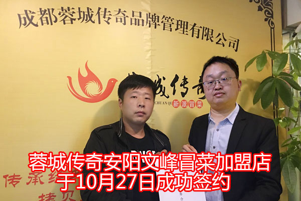 蓉城傳奇新派冒菜【河南安陽店】于2017年10月27日簽約成功